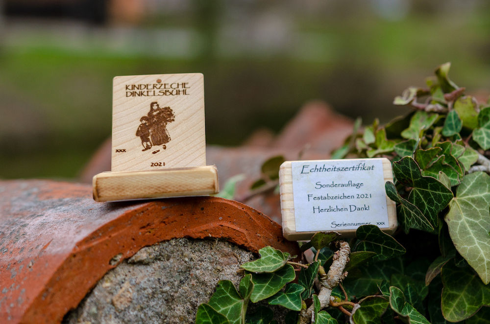 Das reguläre Festabzeichen sei aktuell am Stand von Uwe Hertwig vor der Schranne zum Preis von 6€ zu haben, so Mattausch weiter. Man könne es jedoch, so wie auch die limitierte Auflage, die zu einem Preis von 19,90€ (exklusive Versand) zu haben sei, unter corona-unterstuetzung@kinderzeche.de oder telefonisch unter 09851/589520 (bitte auf den Anrufbeantworter sprechen) bestellen. Wie im letzten Jahr fallen im Kernstadtgebiet keine Versand- oder Lieferkosten an.