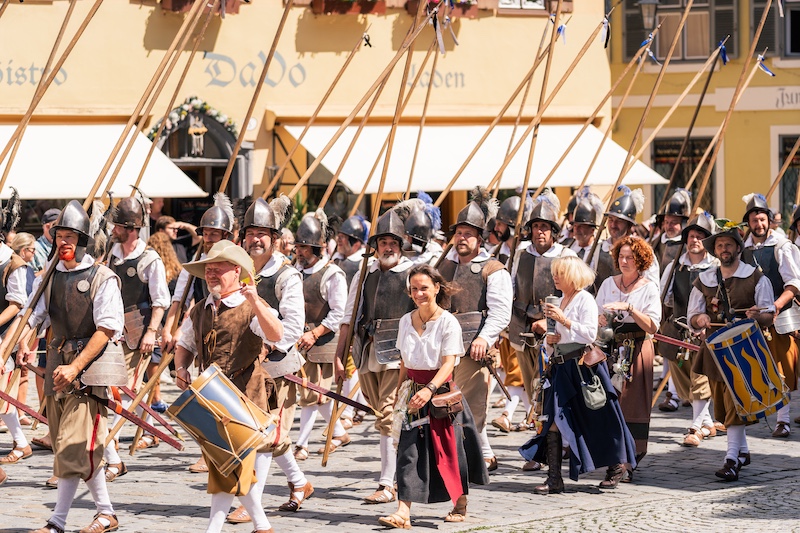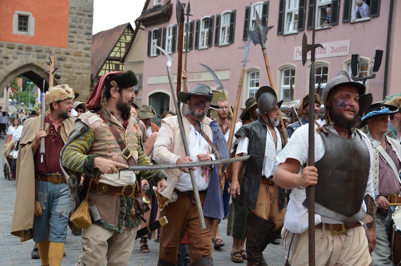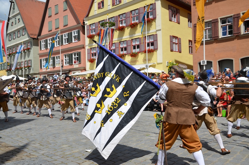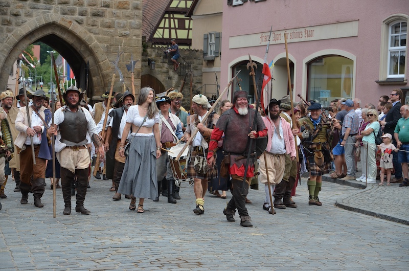 Im Laufe der folgenden Jahrzehnte wuchs die Anzahl auf inzwischen rund 25 Landsknechte, inklusive eines Schwedenhauptmanns, acht Marketenderinnen und deren Kinder. Im Festzug wird die Gruppe von einem Trommler begleitet und von den Marketenderinnen wohlwollend versorgt.