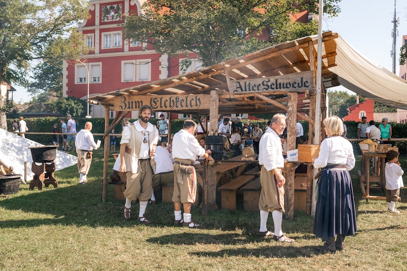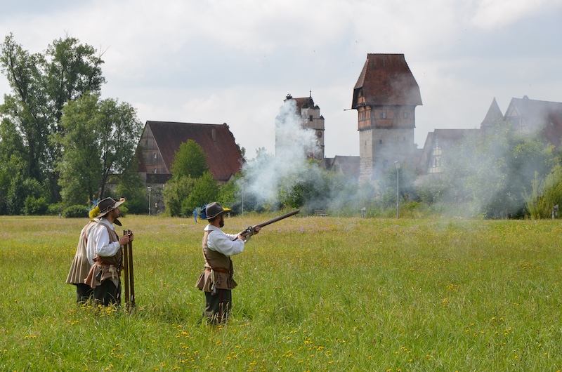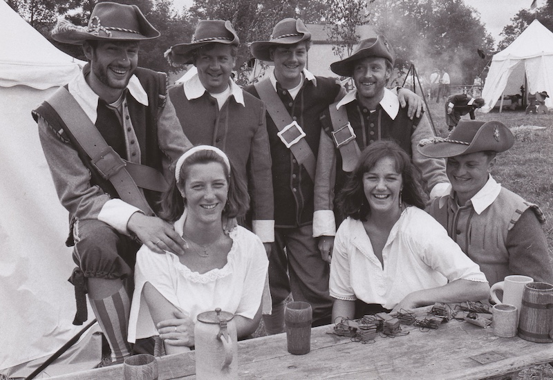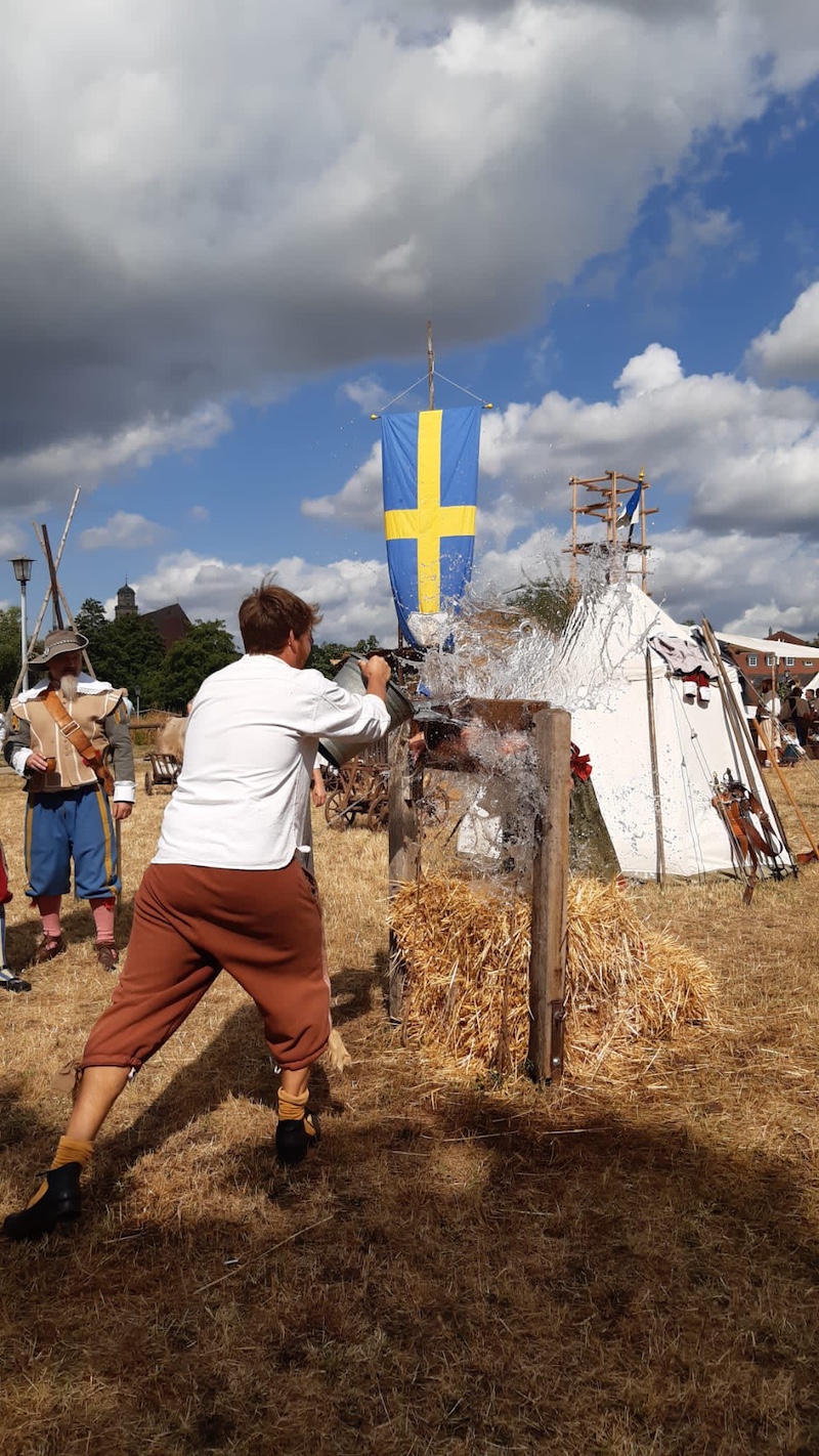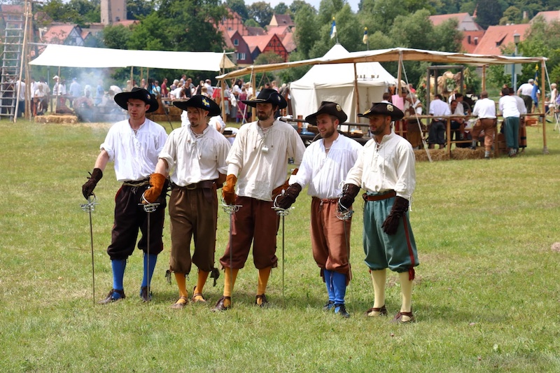 Mit selbstgeschmiedeten Hellebarden bewaffnet, gründeten sie die Gruppe der „Jungschweden“ – anfangs bestehend aus zwölf Jungsoldaten und vier Marketenderinnen. Aus dieser Initiative entwickelte sich eine historische Infanterieeinheit, die dem Schwedenlager bis dahin gefehlt hatte: die Musketiere.
