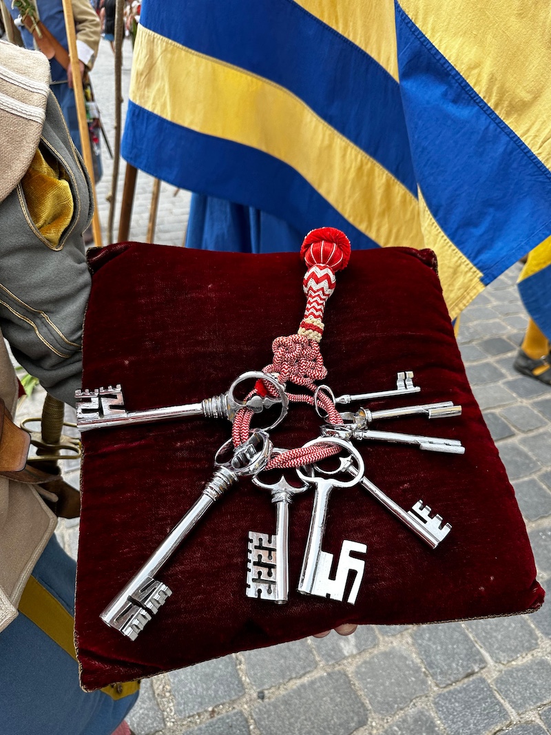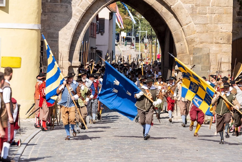 Wenn das Lagerleben zur Neige geht, bereitet sich das Heer auf den Einzug in die Stadt vor. Überzeugt von ihrem Sieg, marschieren die schwedischen Truppen durch das Wörnitztor. Die Ratsherren kommen ihnen mit den Stadtschlüsseln entgegen – bereit zur Übergabe ...