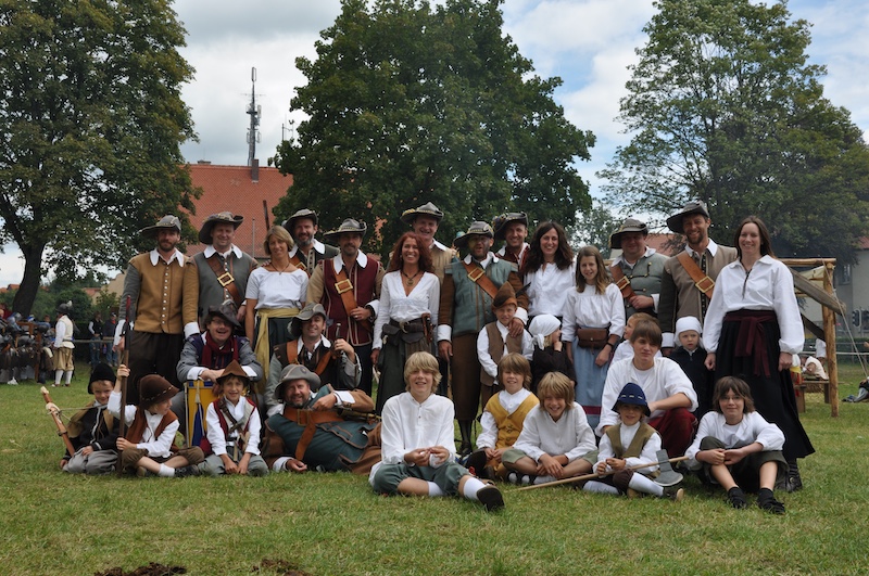 Unter seiner Hand führt er in seiner Gruppe fünfundzwanzig Soldaten, zwölf Marketenderinnen und etliche Kinder, die während des Dreißigjährigen Krieges ebenso mit dem schwedischen Heereszug als Tross unterwegs waren.