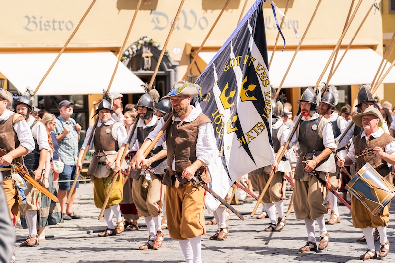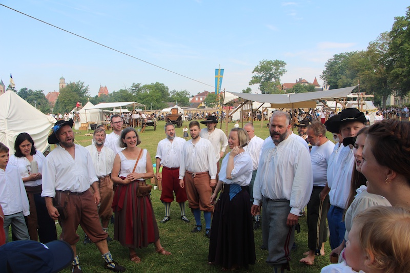 Hervorgegangen aus den „Singenden Schweden“ tragen die inzwischen gut 40 weiblichen und männlichen Schwedentänzer stolz die Fahnen des schwedischen Königs und führen das schwedische Fußvolk im Festumzug an. Mit ihrem eigenen Liederbuch singen sie Landsknechtslieder im Schwedenlager und während des Umzugs.