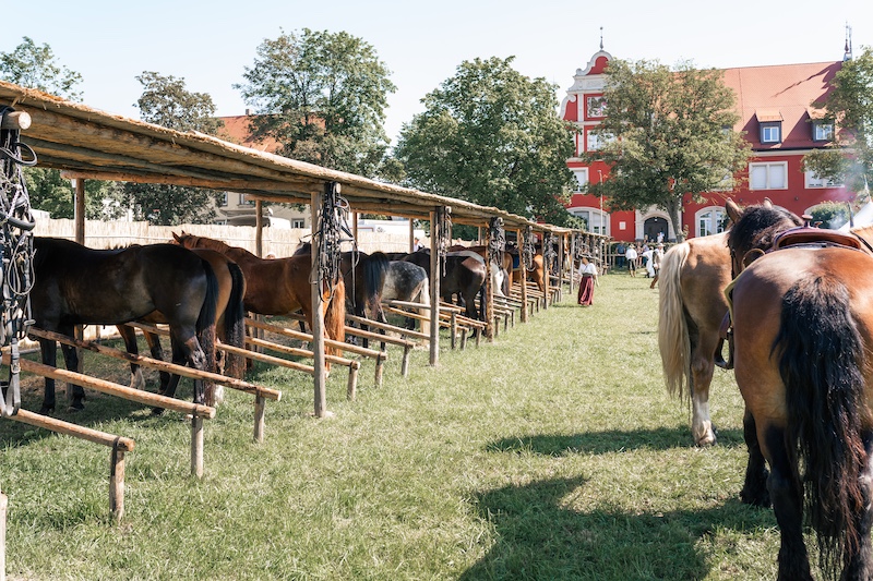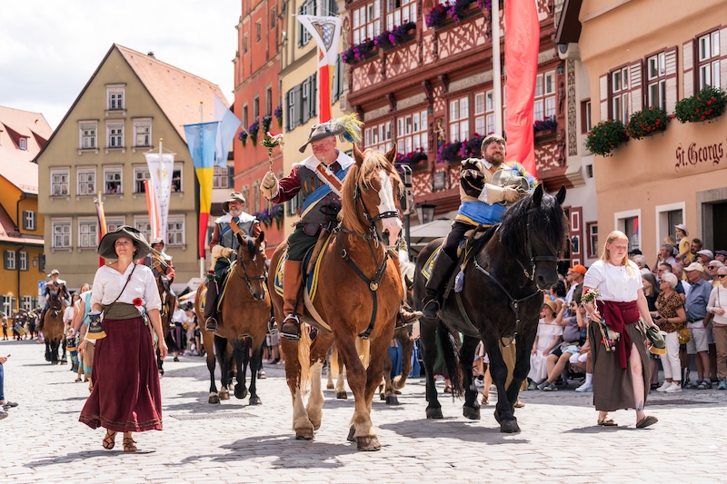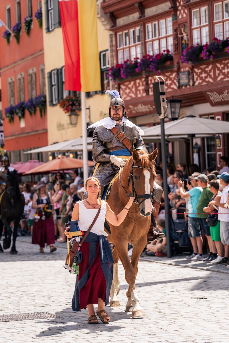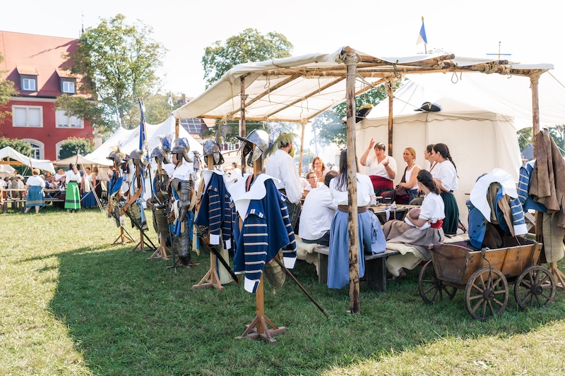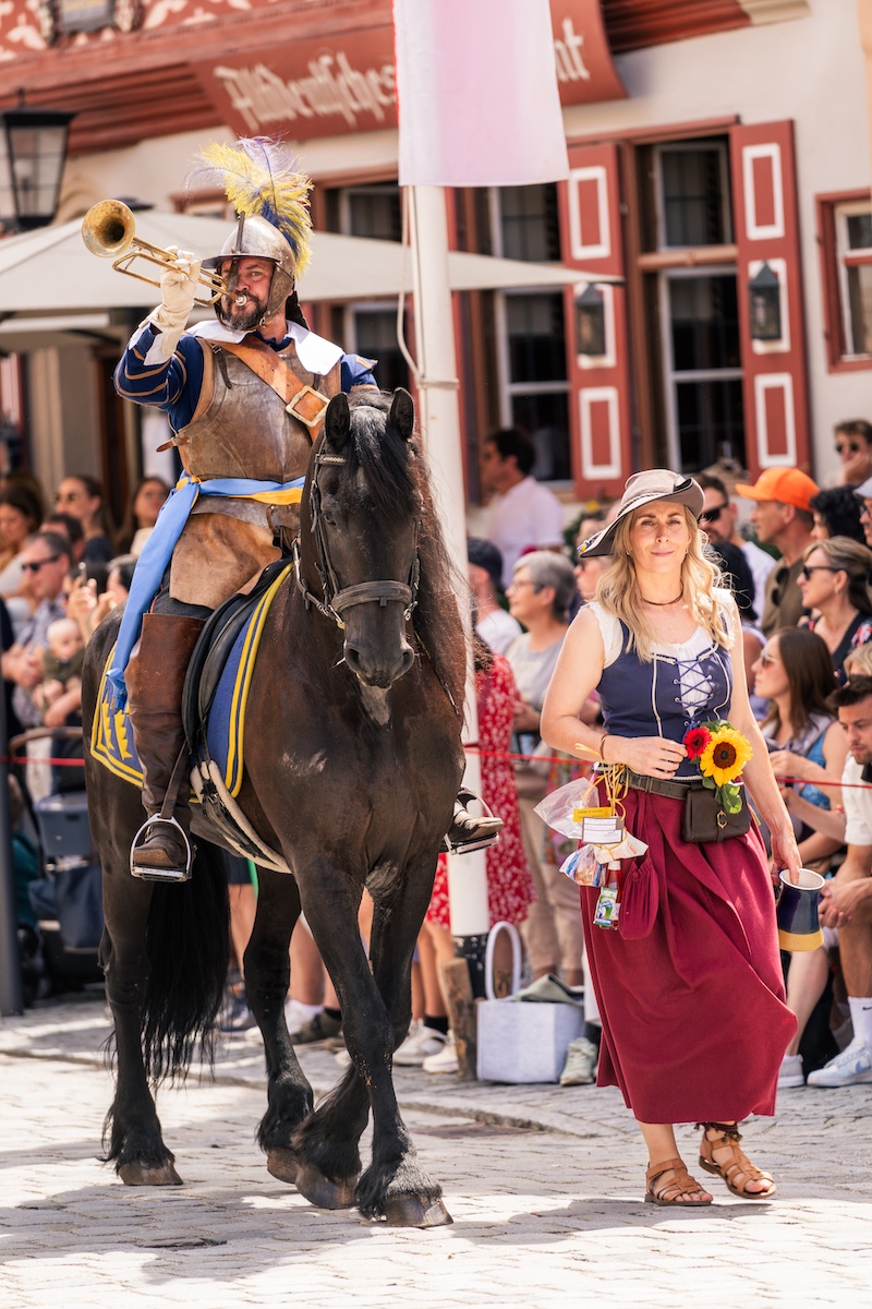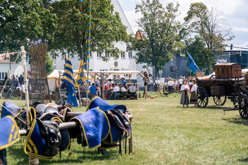 Um das Wohl der Reiter und ihrer Pferde kümmern sich rund 40 Marketenderinnen. Einige begleiten die Reiterei direkt und tragen so zur Sicherheit während des Festzugs bei, andere bilden gemeinsam mit weit über 100 Kindern aus dem Schwedenlager den lebendigen Tross. Viele dieser Kinder sind bereits seit ihrer Geburt Teil der Gemeinschaft.