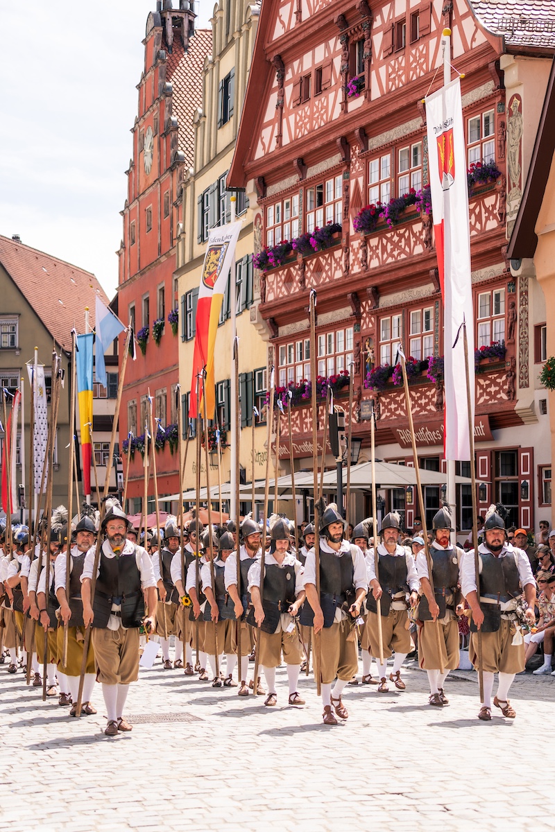 Beim Nachspiel, der „Stadtübergabe“ auf dem Altrathausplatz, stehen die Drabanten dem Obristen Claus Dietrich von Sperreuth als Leibwache zur Seite. Dort werden ihnen die Schlüssel zu den Toren, Türmen und dem Zeughaus der besetzten Stadt Dinkelsbühl übergeben – und auch während des Festzugs verbleiben diese symbolisch in ihrem Besitz.